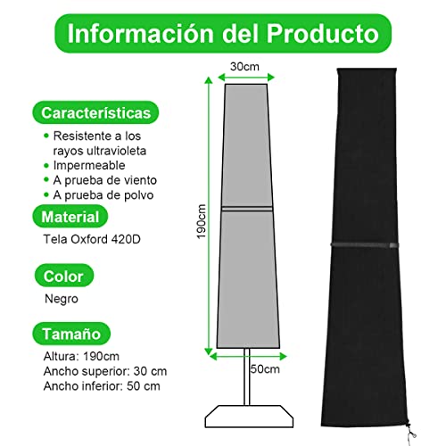 • 【Wide Compatibility Size】 -190 cm H x 30 cm W (top) / 50cm W (bottom). Our parasol cover fits most of parasols on market. Check your parasol’s dimensions for proper fit.