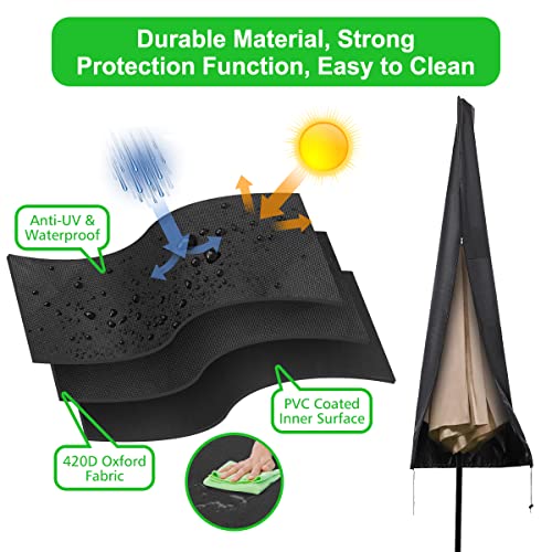 • 【Waterproof 420D Heavy Duty Durable Material】: This parasol cover is made of heavy-duty 420D Oxford material and double bound edges give full protection for the cover from cracking, fading. 420D oxford materail is more durable than other 210D oxford fabric.