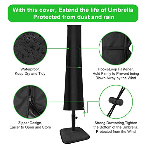 • 【Unique Windproof Design Double Protection】Our parasol cover has a hook & loop fastener and extra drawstring design. Even in the event of a hurricane, your umbrella can be prevented from being blown away by the wind. In addition, the protective cover also contains the drawstring of the lock can improve security. The protective cover with zipper can be easily carried or removed.