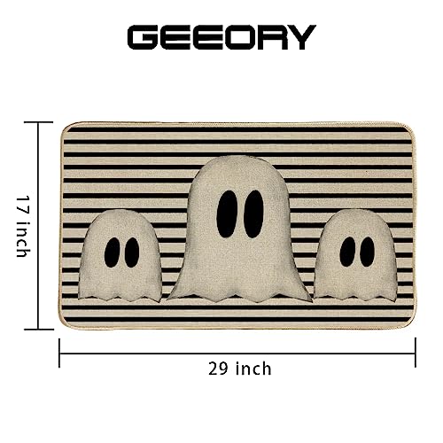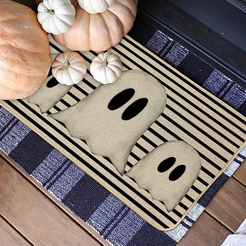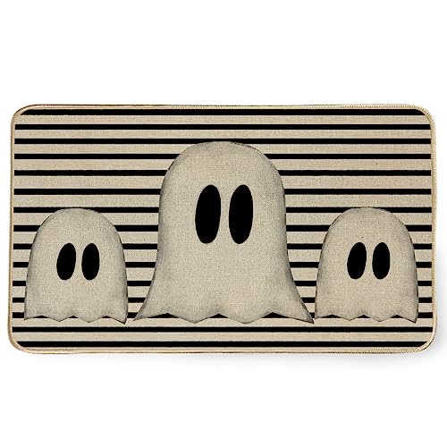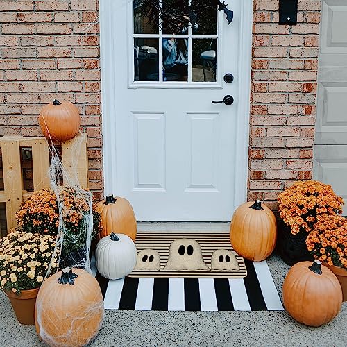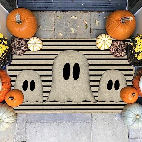 - [Perfect Halloween Decor] Our Halloween ghost welcome door mat features black and white stripes with ghost pattern design, can add a touch of Halloween spirit and spooky atmosphere to your home. This Halloween ghost welcome door mat can perfectly impress your guests, complete your holiday decorations and dinner party. It also makes a great holiday gift for friends and neighbors