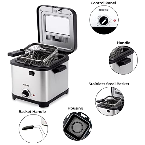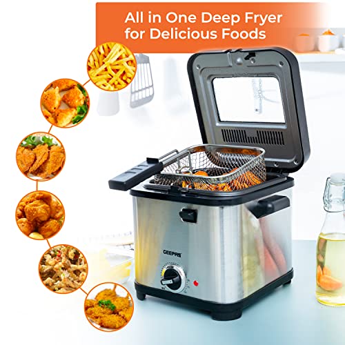 Home Small Appliances Geepas Deep Fat Fryer, 900W | 1.5L Stainless Steel Fryer with Viewing Window | Easy Clean, Non-Stick Oil Tank | Adjustable Temperature Control wi
