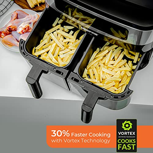 - ✅ VORTEX TECHNOLOGY - With Vortex rapid air circulation technology, you can prepare your favourite foods 30% faster and healthily. Hot air circulates to cook food more evenly and produce crispy results while using up to 99% less oil, you only lose the fat but still get the same crispy chips and juicy chicken wings.