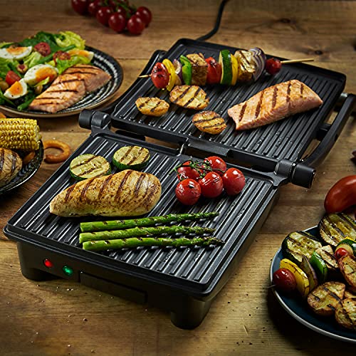 - Traditional Contact Grill or Flat Open Griddling with 180° Hinge - The 180° Degree Hinge can be opened into a flat position for open griddling, giving you the space to grill even more delicious food.