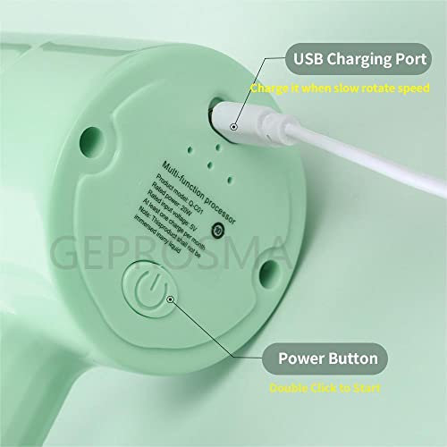 - 3.【Cordless Rechargeable Electric Onion Meat Chopper Garlic Mincer】Mini vegetable chopper rechargeable reused,when the chopper turns slowly,it means the battery is low power, please charge the chopper.