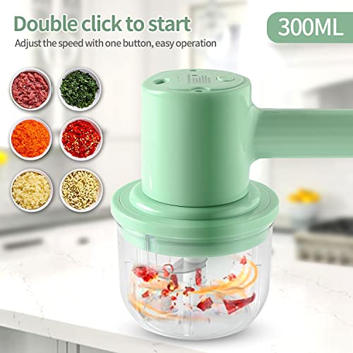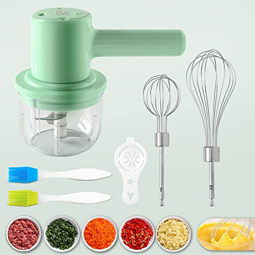 - 1.【Rechargeable Electric Vegetable Chopper Garlic Crusher Food Processor 300ML with Mixer 2 in 1,Perfect Kitchen Gifts】You will get: 1*food chopper,2 *hand mixer,1* egg white separator,2*silicon brushes,1* usb charging cable.Nice gift for women,mum