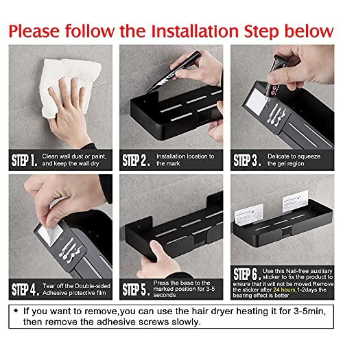 - ✅NO DRILL SHOWER CADDY- No need for punching, no damage to the wall, beautiful appearance, It needs to be kept dry for 24 hours after installation without nails. The product can hold the weight of 20 LB. Pease make sure the angle of the corner is 90° and check the suitable installation wall picture before purchase.