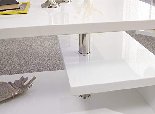 - DESIGN: Constructed from chunky MDF panels with a high-gloss painted finish in polar white, the table is engineered to provide a selection of surfaces at varying heights, united by a chrome post at one end. A solid and stable surface for drinks, dishes and magazines.
