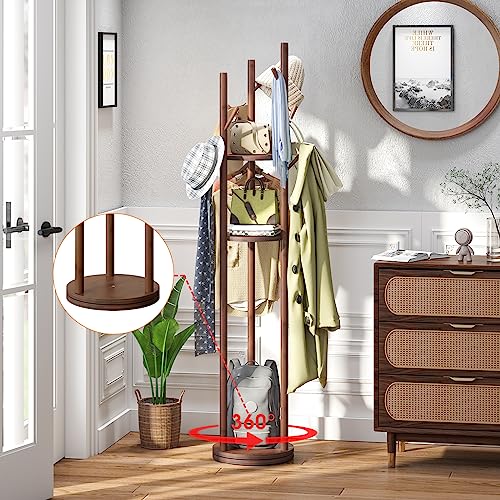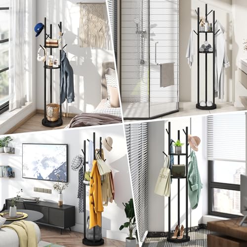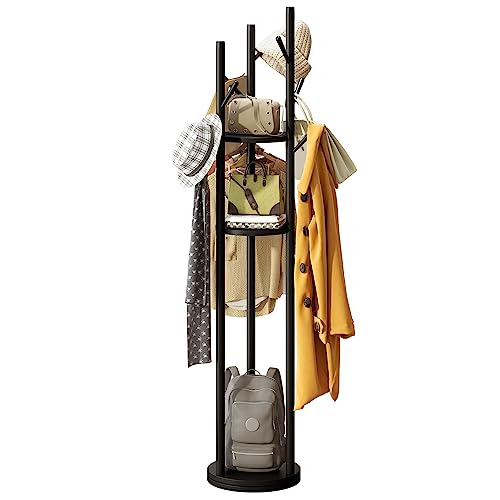 • 【ROTARY DESIN】The 360° rotary design hall tree coat rack is more convenient to take or hang apparels, together with 3 layer round-base shelves for storage or display, an essential household decoration.