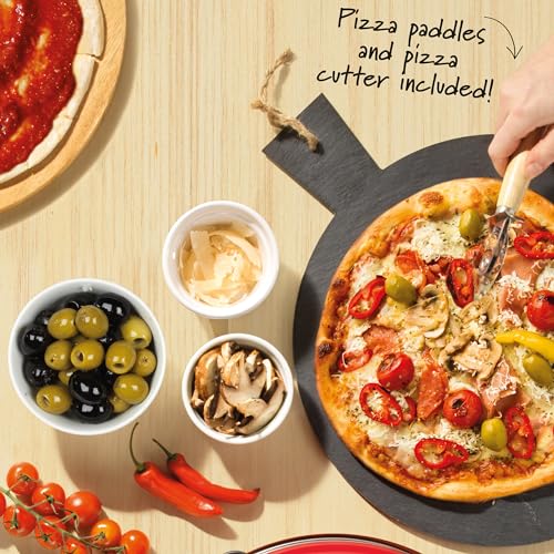 - The pizza oven also includes 2 pizza paddles for easy removal from the stone and a pizza cutter for simple serving of your dishes.