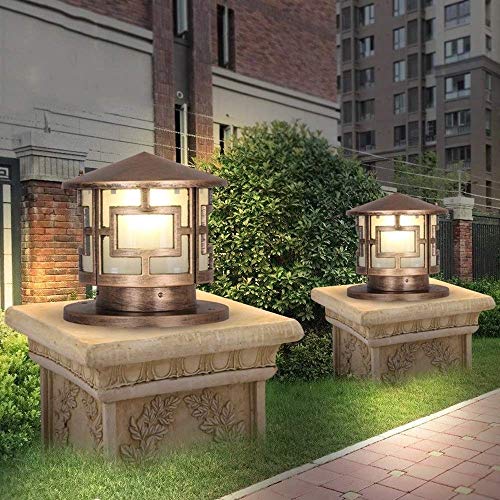 GJCQZQ Exterior Rainproof Round Outdoor Waterproof Column Head Light Park Community Garden Street Lights Wall Pillar Light E27 Lighting Porch Pat