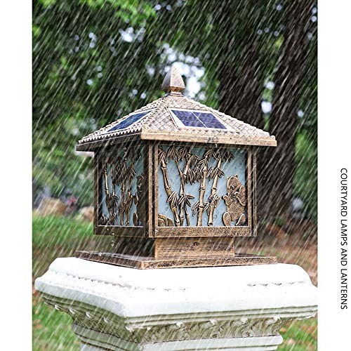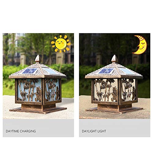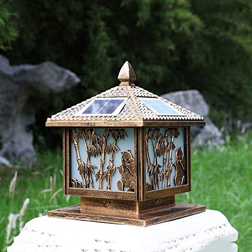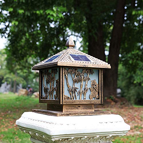 Home Garden Furniture GJCQZQ Exterior Rainproof Solar Outdoor Waterproof Patio Antirust Aluminum Street Pillar Bollard Post Light Continental Victoria Glass Garden Law