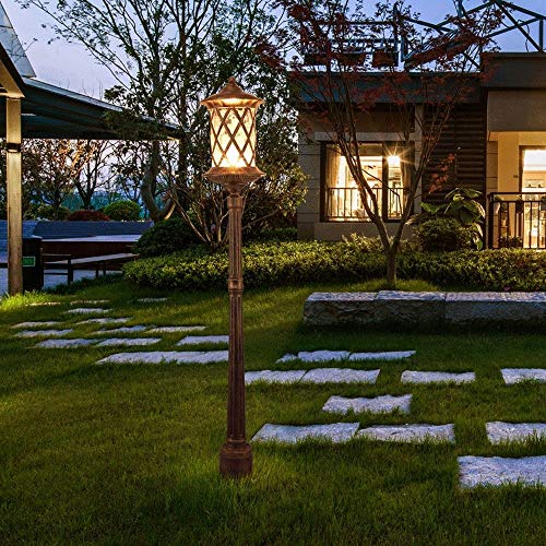 Home Garden Furniture GJCQZQ Exterior Rainproof Vintage European Aluminum Tradition Victoria Garden Patio Lawn Lamp Column Light Retro E27 Glass Lantern Outdoor IP55 W