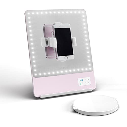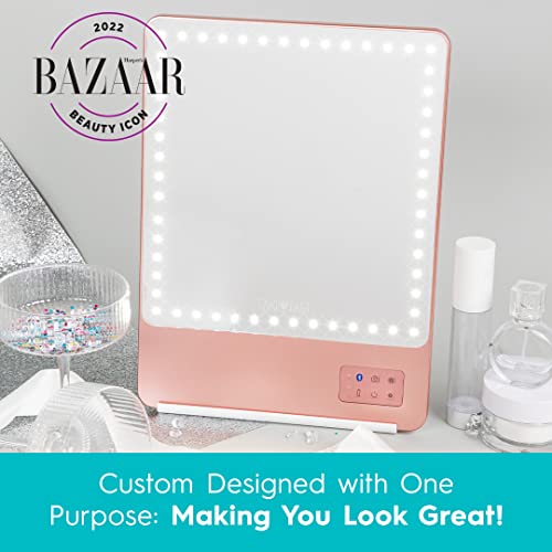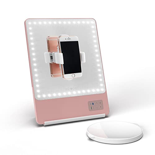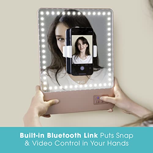 Glamcor Riki Skinny Smart Vanity Mirror with HD LEDs, Magnifying Mirror Attachment, Phone Holder and Bluetooth Control (Rose Gold, 10X Magnificat