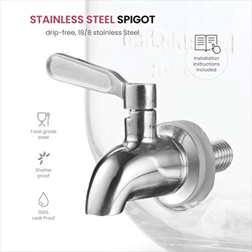 - STAINLESS STEEL SPIGOT - Mess-free and protected. An 18/8 stainless spigot is affixed to the dispenser for a steady stream of cool beverages. The spigot is a 100% leak-proof and drip-free. A tin metal lid keeps bugs and debris out of your beverages, allowing you to enjoy lemonade, iced tea, infused water, or punch in a pleasant, neat, manner.