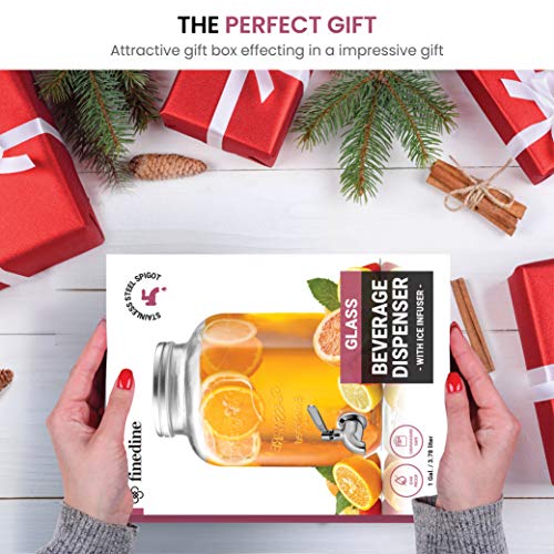 - PREMIUM GLASS - Constructed of premium-grade, ultra-durable glass, the dispenser will be secure and balanced for indoor and outdoor use. The crystal-clear walls grant you the grand view of the goodness inside, and the wide mouth authentic mason jar design adds a majestic touch to any setting.