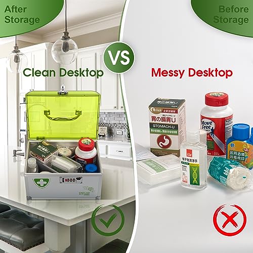 • With 8.46*5.87*5.51 inches of space to hold multiple prescription bottles and other items, the compact and portable medicine box is perfect for outdoor, field.