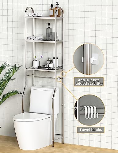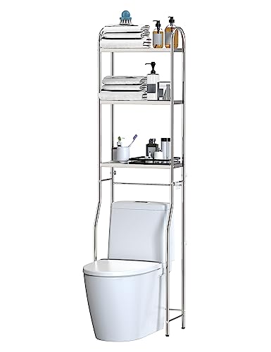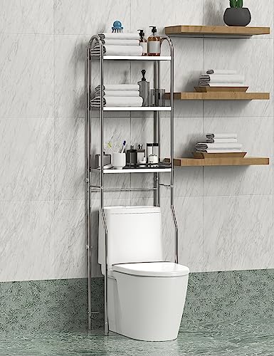 GloTika Over The Toilet Storage, 3-Tier Stainless Steel Bathroom Shelves, Freestanding Above Toilet Storage Shelf for Bathroom
