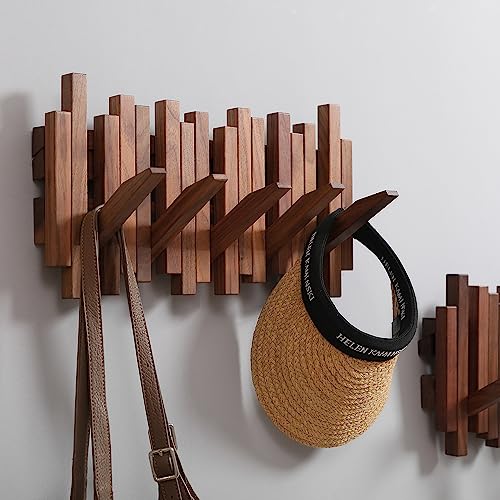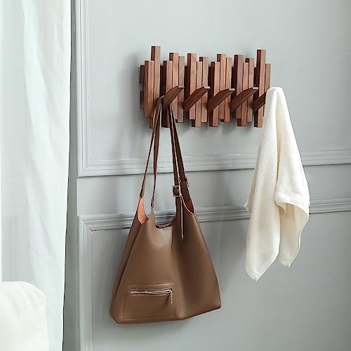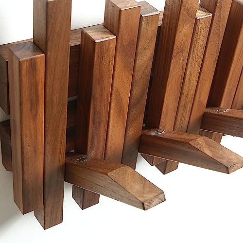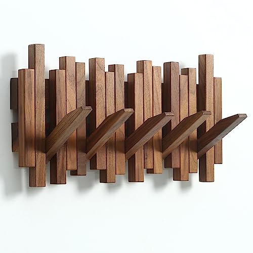 - HANDMADE SOLID WOOD&UNIQUE DESIGN-Modern Coat Rack designed with natural wood and handmade with a unique flip up design so the hooks stay up when not in use.(Built in magnetic design)