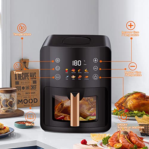 - 【Advanced Touch Screen Menu】 Our Air Fryer allows you to CHIP, CHICKEN, STEAK, SHRIMP, MEAT, CAKE, PIZZA, FISH, which is the best menu for your family. Cook all your favorite meals mess and hassle-free by choosing from preset cooking modes that cook a perfect meal.