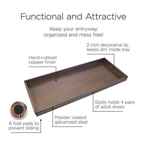 - Powder coated, galvanized Steel constructed with a copper finish. Dimensions: 34"L x 14"W x 2.5"H