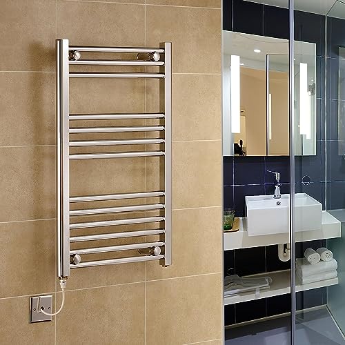 - BEAUTIFULLY DESIGNED HIGH QUALITY FINISH. Greened House Electric Chrome towel rails are designed to enhance the look of your bathroom with a high-quality finish that’s second to none. Easy to install our towel rails offer a beautiful finish to any bathroom. Width 500mm x Height 800mm.