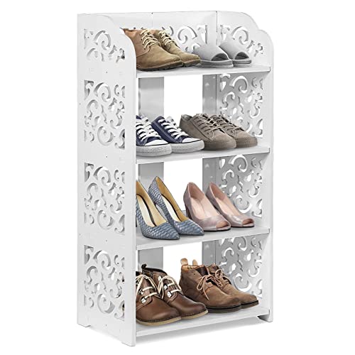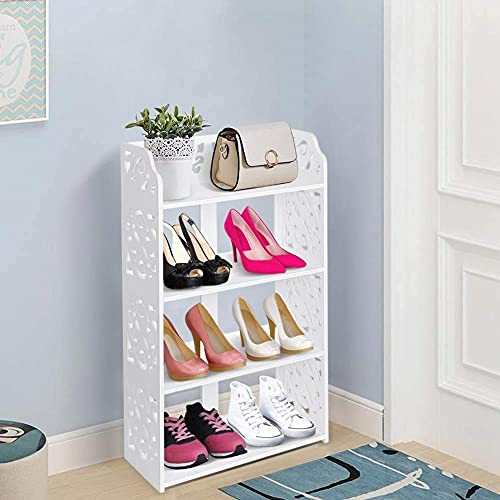 - High Quality Materials: This 4 tier white shoe rack is made of plastic, this storage unit is sturdy, durable and waterproof. Easy to clean with a damp cloth. Very suitable for you to use for a long time, can make your home more organized and tidy