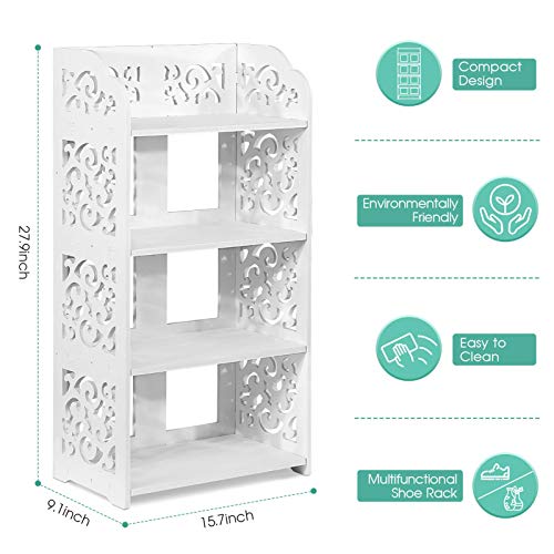 - Multifunctional: White is suitable for any room in your home. The shelf is not only a shoe rack, but also can be used as a bathroom shelf, small bookcase or display shelf. You can store books, toys and cosmetics in this shelf