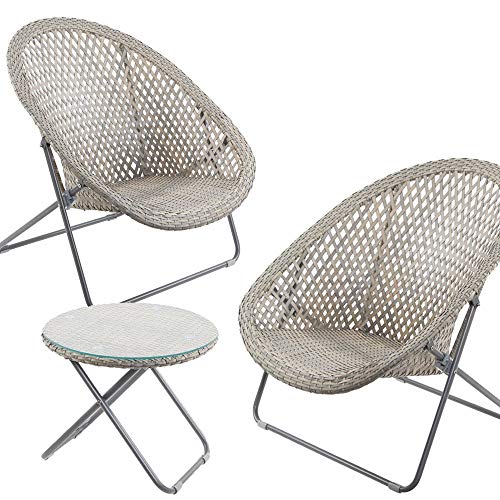 Home Garden Furniture Grey & Buff Faux Rattan Garden Chair & Table Set