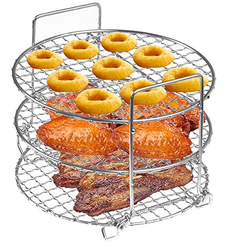 • Perfect Air Fryer Accessories:The air fryer grill rack is made of premium food-grade 304 stainless steel,preventing rust and high heat resistant.Our air fryer rack is smooth and burr-free,keep your hands and air fryer safe,making you to enjoy healthy food without worries.