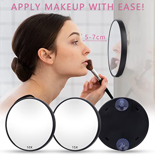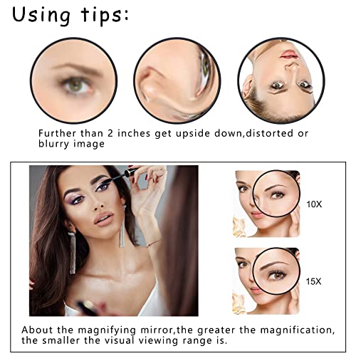 - 【HIGH QUALITY】:Distortion free DFP glass allows you to have the clearest image possible. Premium quality 15X 10X magnifying mirror durable and solid to use It has strong suction cups make the mirror more stable and stronger, easy to install and re-position
