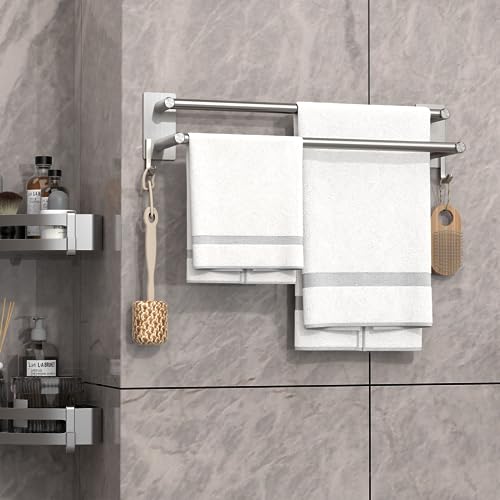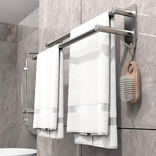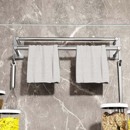 - 【Suitable for Occassion】This is a practical towel storage organizer. It can be widely used in bathroom, kitchen, cabinet, closets, door, vanity, laundry rooms, hotels and so on. Stick towel bar on the bath shower wall to hang towel, or put them in the kitchen to hang tea towels or organize cookware. Undoubtly, it's the ideal goodies for organizing.
