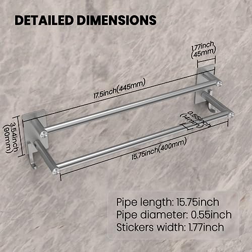 - 【SUS 304 Stainless Steel】This towel rail wall mounted is made of high quality thickened steel pipe with 14MM diameter, and a brushed surface to prevent corrosion, scratches. Total length is 44.5cm, suitable for large towels etc. Even in a wet environment, it will remain intact,anti-rust.