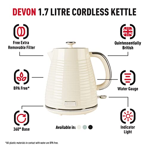 - Advanced & Stylish Design: enjoy your cuppa with Haden Devon Cream Kettle. This elegant electric kettle features a vibrant cream colour housing. Combining style and functionality, this energy saving kettle is ideal for your kitchen.