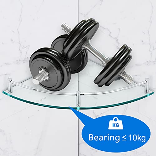 - 【6mm Tempered Glass】 The 2PCS shower shelves are made of 6mm tempered glass, which has stronger bearing capacity and can bear 10kg weight. Made of high quality stainless steel and tempered glass, the high quality construction and excellent fastness of this glass stand are further enhanced.