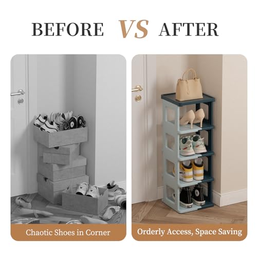 - ✔STURDY DURABLE STRUCTURE - This vertical shoe rack is made of high-quality polyethylene material. The structure is very stable, which can place larger and heavier items and has a long service life. The sided panels well prevents items from falling.