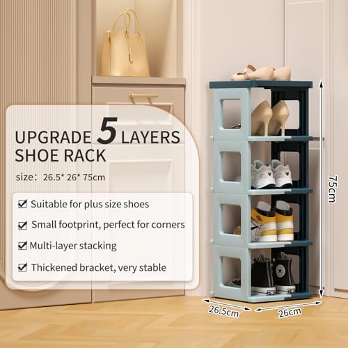 - ✔SPACE-SAVING VERTICAL SHOE RACK - The unfolding dimension is 26.5(L)x26(W)x75(H)cm and the folding size is 38(L)x26(W)x14(H)cm. This shoe rack is an ideal storage solution for narrow or tiny space like hallway, entryway, closet, dormitory, cabinet, garage. When not in use, the narrow shoe shelf can be seperated apart and folded for space-saving storage.