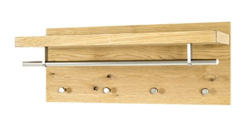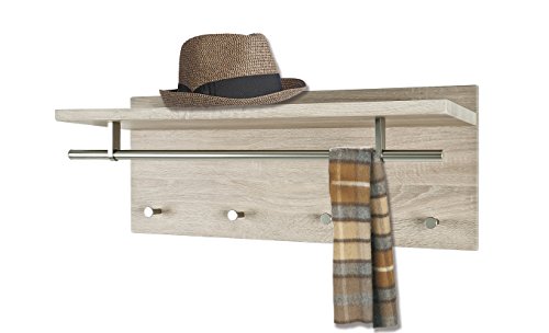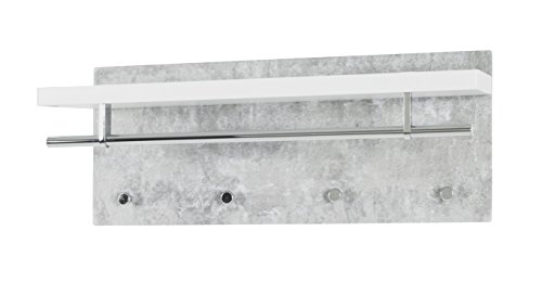 HAKU Möbel Wall coat rack, MDF, white stainless steel look, W 75 x D 26 x H 30 cm