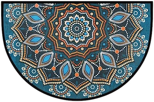 Home Hallway Furniture Half Round Door Mat Blue Mandala Half Round Door Mat Outdoor Entrance,for Outside Entry 18×30 in Wear Resistant Semi Circle Floor Mats Area Rugs