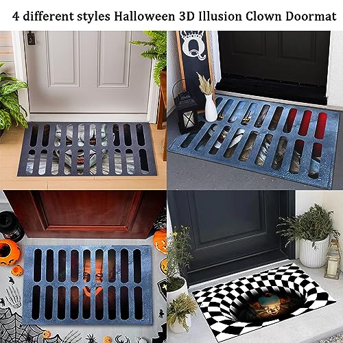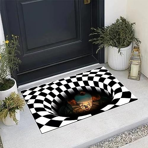 - 🤡🤡【 Halloween 3D Illusion Clown Doormat 】--Halloween 3D Illusion Horror Clown doormat, horror movie clown Halloween decorated outdoor welcome doormat.