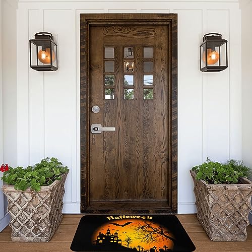 - Halloween Doormat Size: The size of this halloween doormat is 23.6x15.7 Inches (60x40cm), this low profile halloween door mat is fits easily under the door. New printing technology applied stands wear and tear and keeps vivid color for a long time.