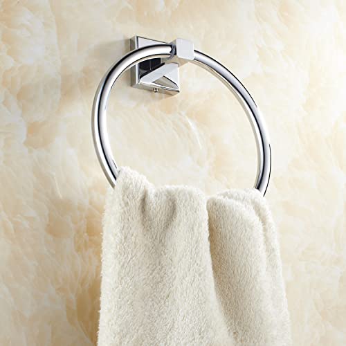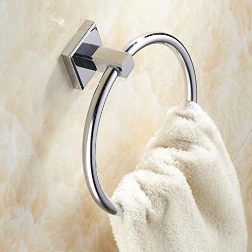 - 【Material】The towel ring is constructed of stainless steel,the square base is mad of brass, with polished chrome finished, protect against corrosion & rust, It can always holding up well for a long time.Don’t worry it can fall off the wall.