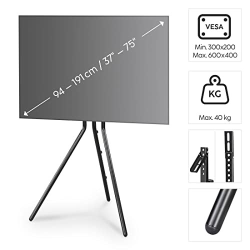 - Height-adjustable TV floor stand: for TVs with a screen diagonal of 94 - 191 cm (37 - 75 inches), VESA 300 x 200 to 600 x 400 mm, up to 40 kg