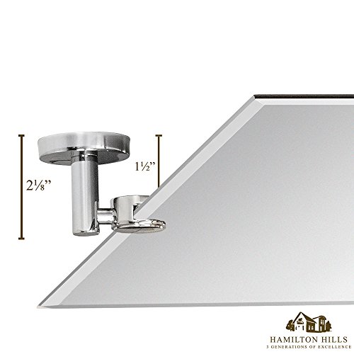 - SOPHISTICATED DESIGN: One of our Best Sellers, this simple 51cm by 76cm elegant beveled rectangle is now available with our pivot adjustable wall brackets. A sleek, modern, clean, beveled edge. A floating, frameless design with our safety vinyl backing suspended by our adjustable rotating polished glass clamps. Avoid slipping and loosening found in cheaper brands.