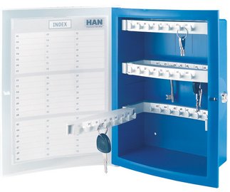 - The key cabinet is designed to meet the highest demands. The sturdy metal lock makes sure that up to 63 keys are stored securely.