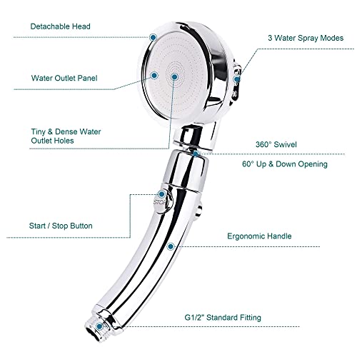 - 【PREMIUM QUALITY】High quality ABS plastic makes the shower head lightweight and easy to hold in hand; Elegant glossy chrome finish is highly reflective for a mirror–like look that works with any decorating style.
