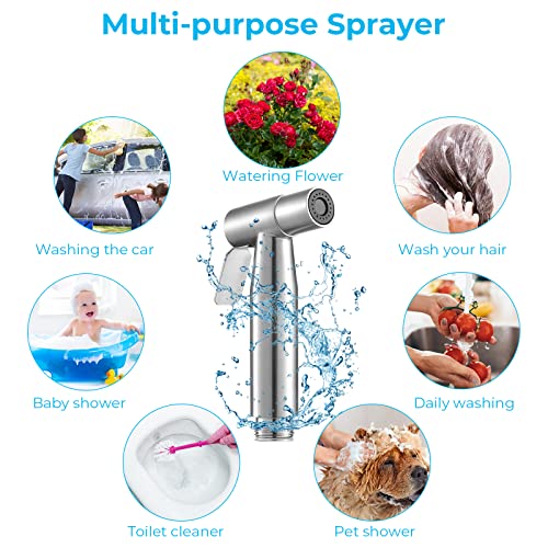 - 【Multiple Using】:Hand held bidet sprayer is a great suitable for the whole family, especially suitable for baby cloth diaper sprayer, dog shower,cleaning, rinsing so on.The perfect solution for everyday personal hygiene contributes to a healthy and happy lifestyle.