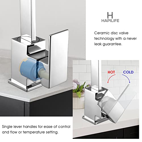 Home DIY & Tools Hapilife Kitchen Sink Taps Mixer Solid Brass Chrome Finish, Modern Square Flat Spout 360 Degree Swivel Waterfall Effect, Monobloc Faucet for Sing