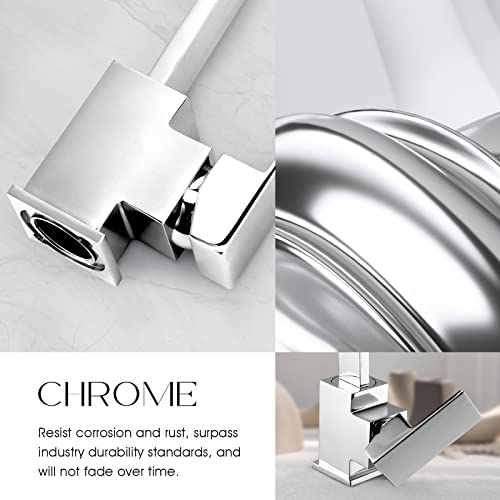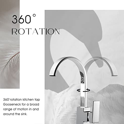 Hapilife Kitchen Sink Taps Mixer Solid Brass Chrome Finish, Modern Square Flat Spout 360 Degree Swivel Waterfall Effect, Monobloc Faucet for Sing