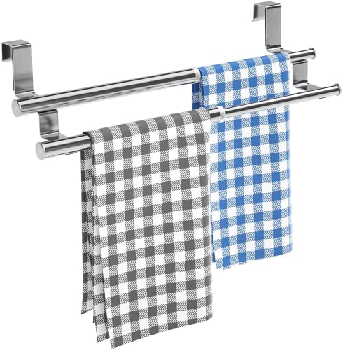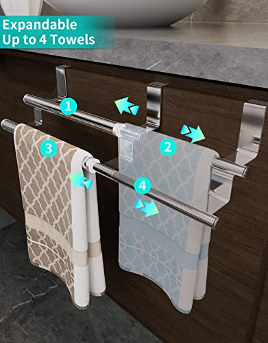 HapiRm Kitchen Towel Holder Over Door Towel Rack, Expandable Tea Towel Rail for Cupboard Door Drawers, Stainless Steel