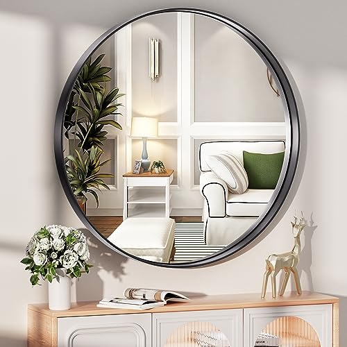 - 【ROUND HD SILVER MIRROR】:Our bathroom mirror adopts 4-layer float technology to ensure 1:1 restoration of real image, no distortion, fast dispersion of fog. The round shape and the super-thin frame create a sense of solemn and order, extending visually space, depth, and light.
